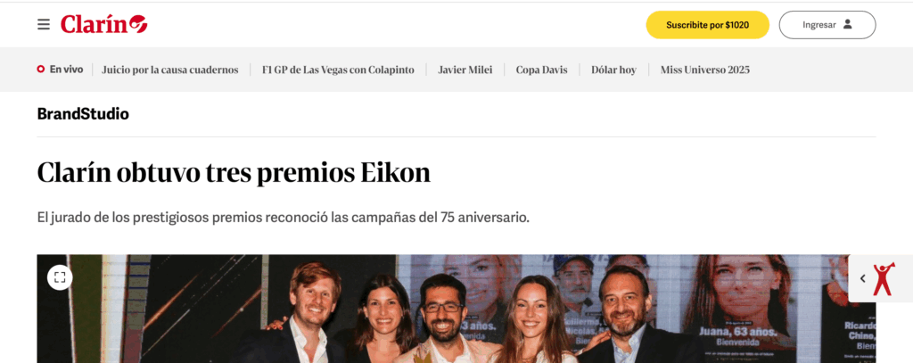 Premios Eikon: el Grupo Clarín ganó en cinco categorías