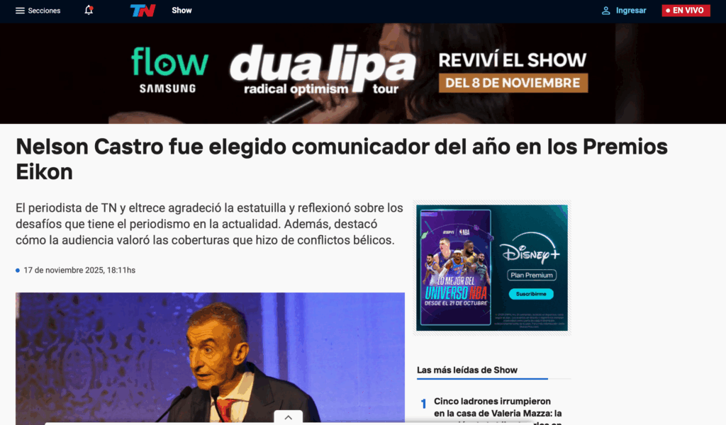 Nelson Castro fue elegido comunicador del año en los Premios Eikon